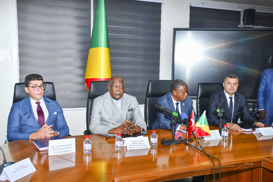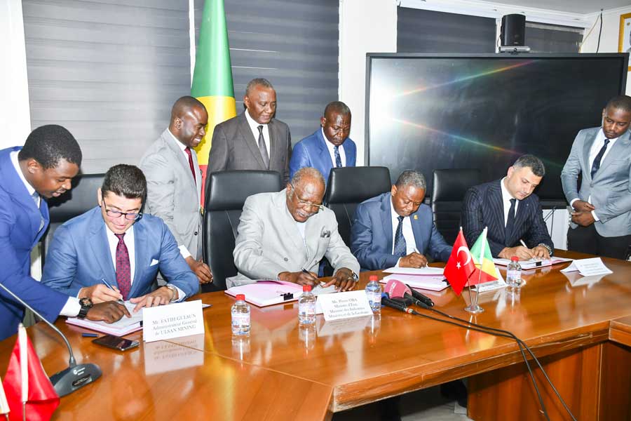 On Monday, August 12, 2024, in Brazzaville, the Congolese government, represented by the Minister of State, Minister of Mining Industries and Geology, Mr. Pierre OBA, and his colleagues in charge of the economy and finance, Mr. Jean-Baptiste ONDAYE, and of transport, civil aviation and the merchant navy, Mr. Honoré SAYI, and the Turkish company Ulsan Mining Congo, represented by its general administrator, Mr. Fatish GULSAN, signed a mining agreement in the district of Mayoko, in the department of Niari.