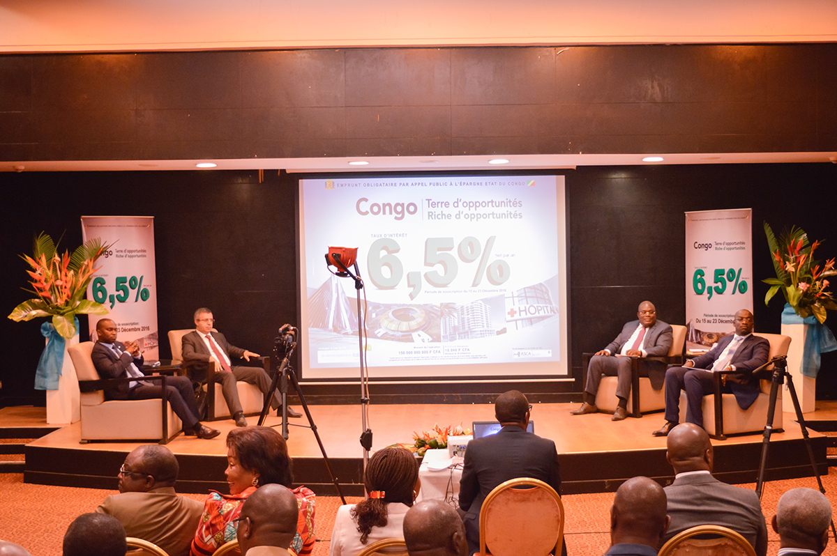 Dubbed “Congo bond issue 6.5% 2016-2021”, this bond was to last for five years. "The underwriting intentions we have gathered so far is reassuring, that is to say an operation that is already successful," said one of the arrangers of the fund-raising operation, the managing director of Crédit Congo , Mohamed Mejbar, adding that the 150 Billion CFAF sought could be largely exceeded.