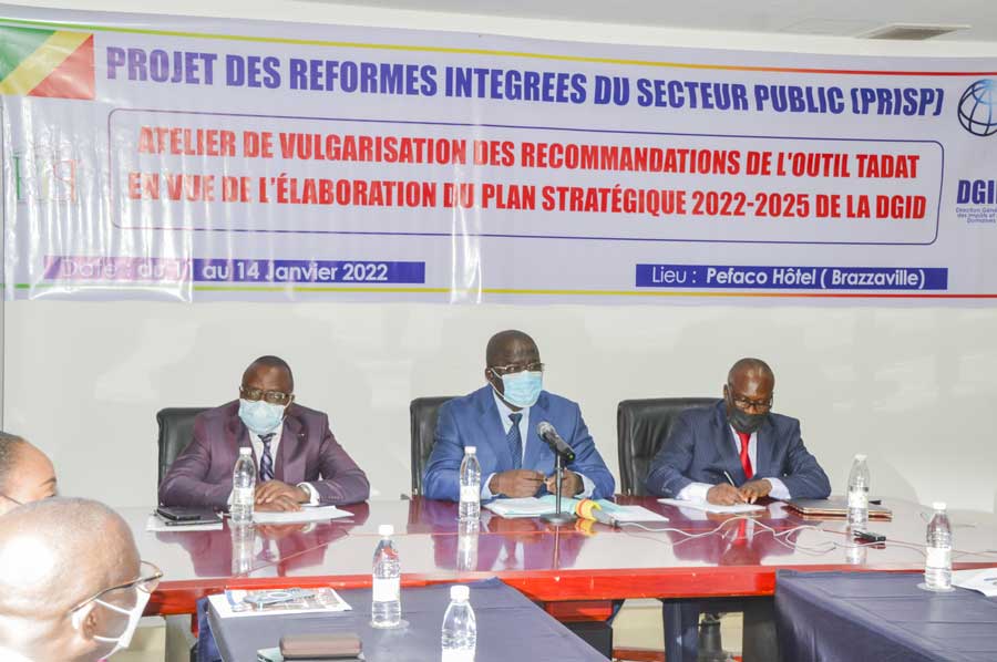 On Tuesday 11 January 2022 in Brazzaville, Ludovic Itoua, Director General of Taxation and States Properties (DGID), opened the workshop on the presentation of the Matrix for implementing the recommendations of Tax Administration Assessment Diagnostic Tool (TADAT) in the presence of Clovin Boziré Ontsouon-Assen, Monitoring and Assessment Officer of the Public Sector Integrated Reforms Project (PRISP).