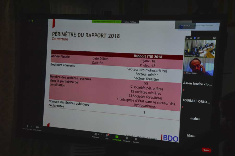 With regard to the 2018 Report that was adopted, Florent Michel Okoko specified that "in terms of background information on the EITI, a certain amount of information (which has undergone a certain evolution in the 2019 and 2020 financial years) has not been indicated. However, Minister Ngatsé informed participants that the Government will ask the authorised services to make this information available to the Independent Director for the 2019 and 2020 financial year. This information currently exists and is part of our discussions with the International Monetary Fund (IMF). This information should be available to allow for a much more assertive development in the 2019 and 2020 reporting exercise".