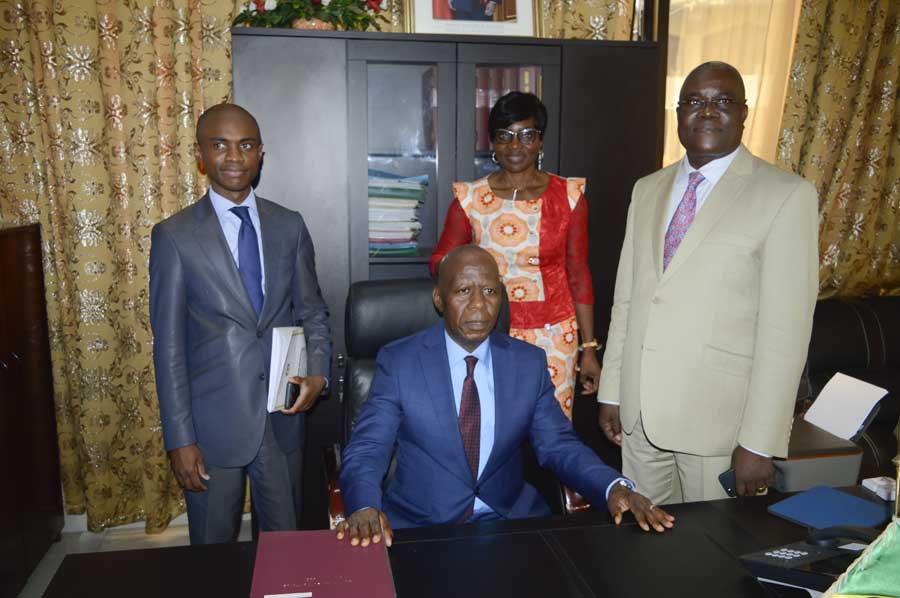 He represented the Minister and was along with the administrative and legal advisor Jean Marie Montsagna , the tax and customs Advisor, Guenole Mbongo Koumou. The Principal Private Secretary proceeded with the ceremony related to the taking of office of the Tax Chief Inspector, Saya Moukassa, as personal tax director, who took over Gilbert Djimbi Poaty who is now retired. Patrice Bokatola Bombo, Chief Tax inspector, took office as director of administrative and financial matters at the Tax and Lands Directorate, who took over Henri Ngatsongo.