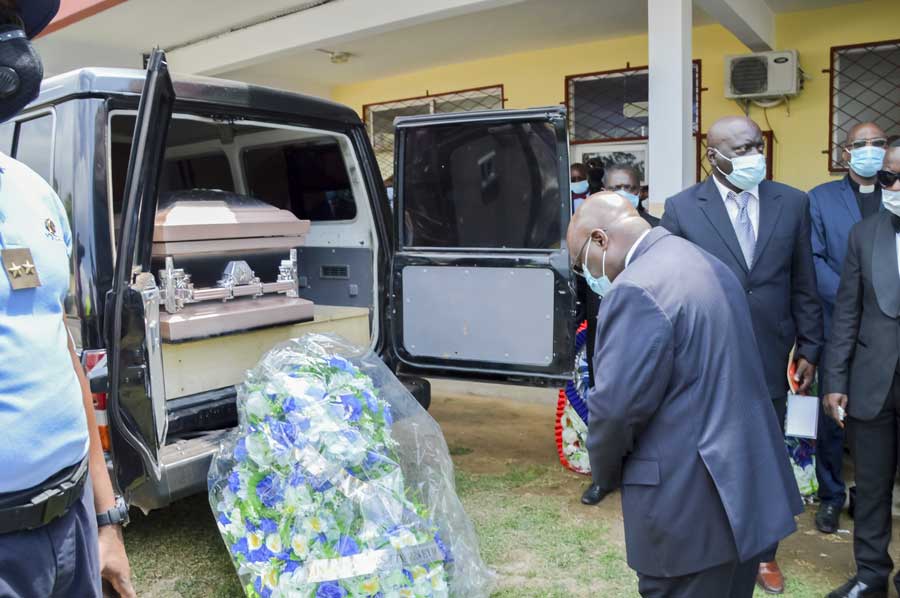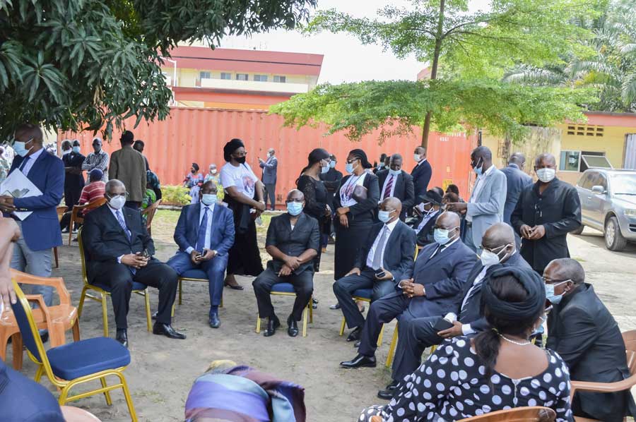 Shortly before the burial, a tribute was paid to him at the place where the body was lifted, precisely in front of the Morgue of the Blanche Gomes Mother and Child Specialist Hospital, by staff from the Ministry of Finance and Budget, the ARTF, relatives, friends and acquaintances.