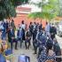 Ludovic Ngatsé lays a wreath of flowers in homage to Robert Jean-Raphaël Massamba Debate