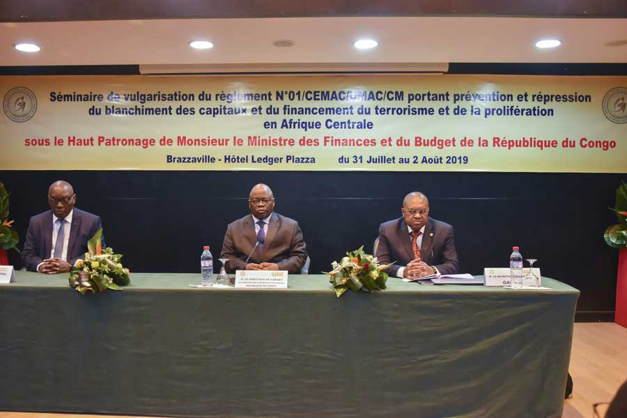Henri Loundou, director of cabinet, representing Calixte Nganongo, Minister of Finance and Budget, opened, Wednesday 31 July 2019 in Brazzaville, a seminar on the popularisation of Regulation N0.1 CEMAC (Central Africa Economic and Monetary Community) of 11 April 2016, on the prevention and suppression of money laundering, terrorist financing and the proliferation of weapons in the sub-region.