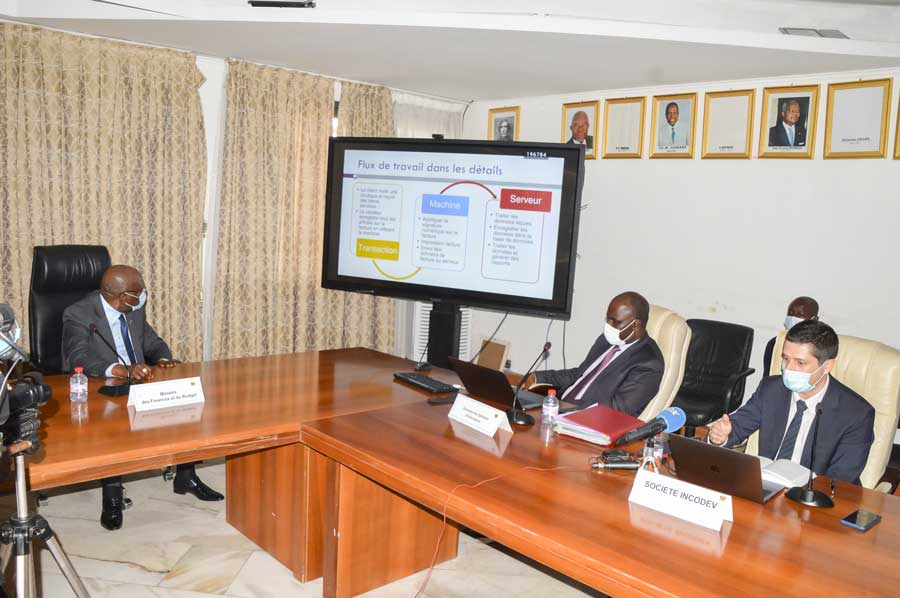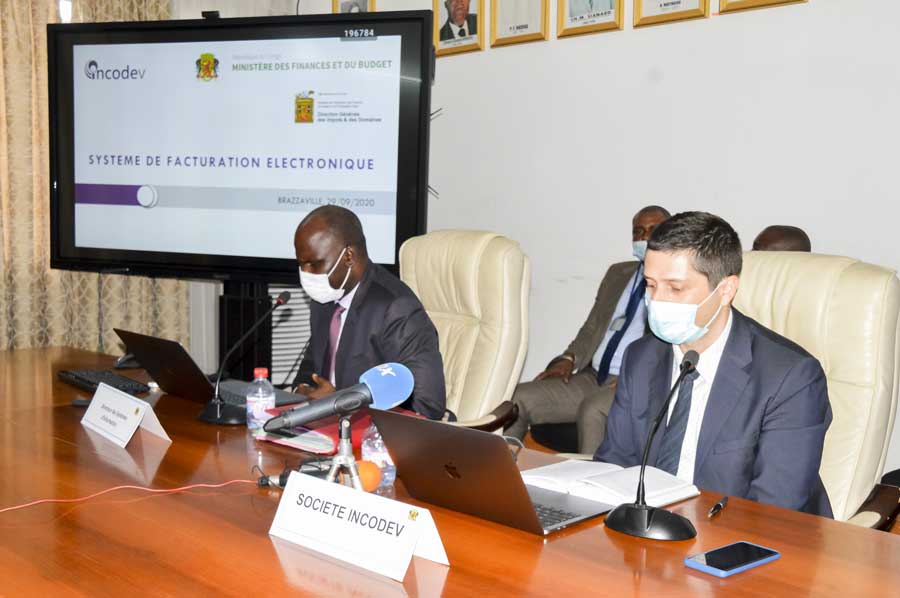 The Minister of Finance and Budget, Calixte Nganongo, followed, on Tuesday 29 September 2020 in Brazzaville, the presentation of the Electronic Invoicing Machine (MFE), made by Ivan Stojiljkovic', Managing Director of Incodev, an international firm located in Belgrade (Serbia).