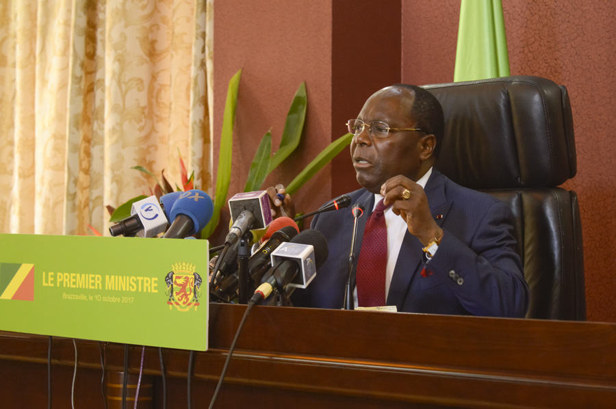 The Prime Minister, head of the Congolese government, held a press conference on Tuesday, October 10, 2017 in Brazzaville. On this occasion,  honourable Clément Mouamba focused on the  mission of  the International Monetary Fund (IMF) which took place from Monday, September 25, to Wednesday,  October 4, 2017 on talks with the Congo on debt and governance. The speaker said he was confident about the economic recovery of the country, which has various sources to replenish its coffers, despite its debt to the IMF estimated at 5,329 billion CFA francs or 110% of the gross domestic product (GDP). He answered questions about Congo's debt, tax loopholes, the future generations Account and Congo's loans to its African neighbours.