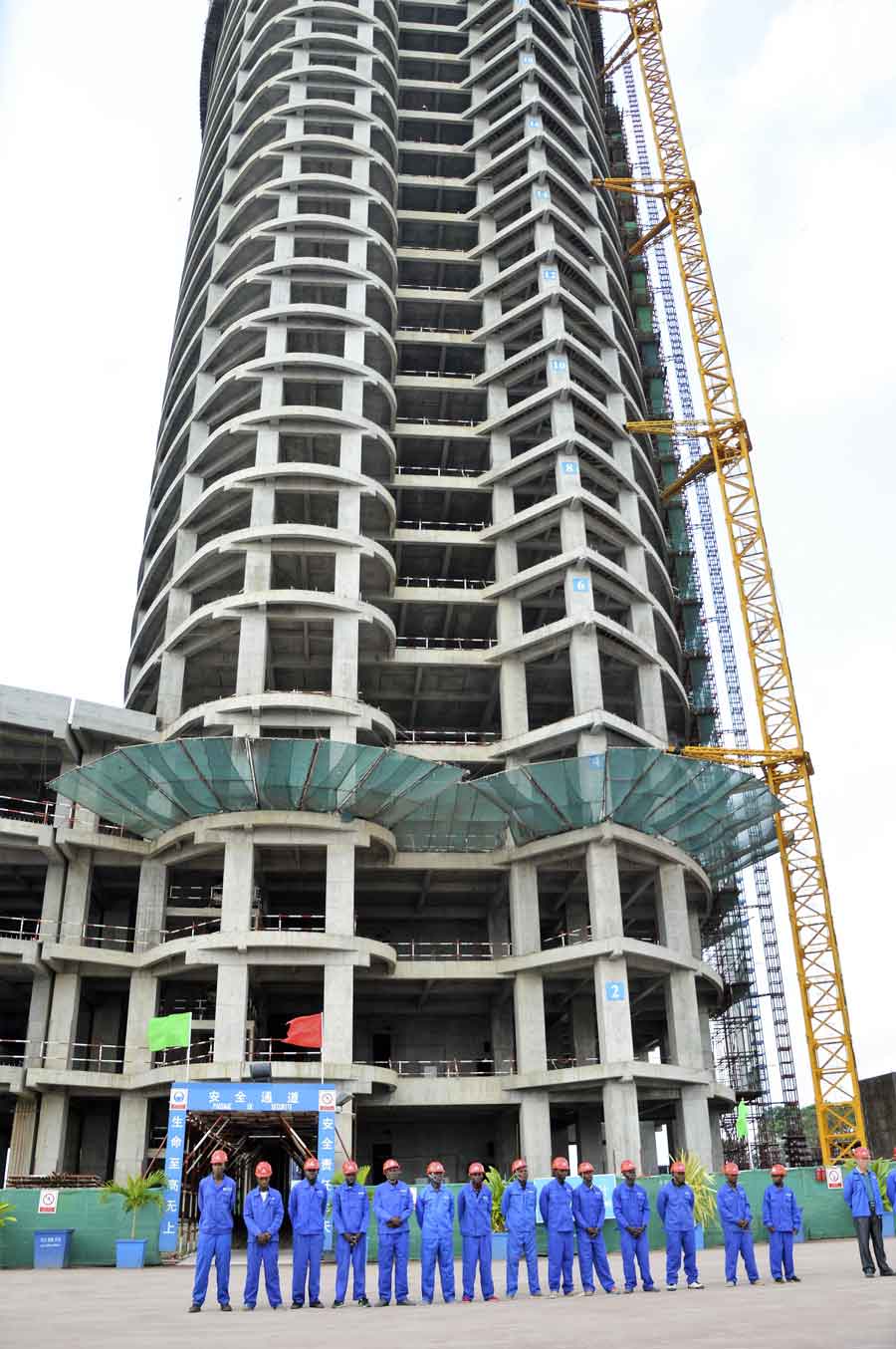 Les deux tours jumelles de trente étages chacune, en construction au bord du majestueux fleuve Congo à Mpila, représentent l’un des fleurons de la coopération Sino-congolaise. En séjour de travail à Brazzaville, depuis le 19 mai 2017, le vice-ministre chinois du commerce, Qian Keming a visité le 21 mai 2017, ces deux Tours jumelles en construction à Mpila-Chacona, dans le 6ème arrondissement, Talangaï, devant abriter le premier centre d’Affaires du Congo, ainsi que le complexe Sportif la Concorde de Kintélé, situé au nord de Brazzaville.