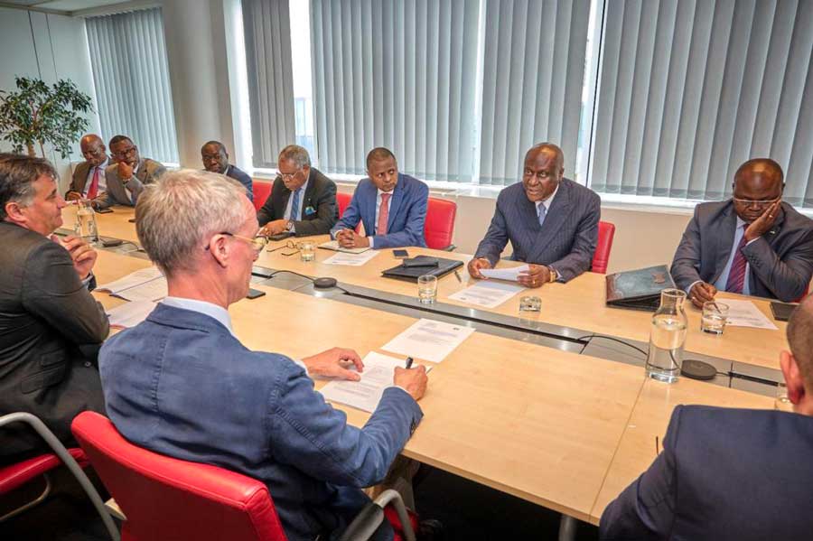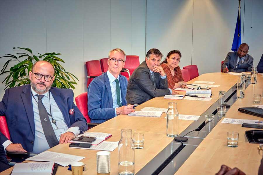 Je tiens tout d’abord à vous remercier, au nom de toute la délégation de la CEMAC, pour votre accueil et votre disponibilité à nous recevoir à Bruxelles, dans le cadre de la tournée que nous effectuons pour la mobilisation des financements du deuxième programme de projets intégrateurs prioritaires de la Communauté Economique et Monétaire de l’Afrique Centrale.