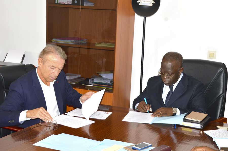La séance de travail entre les responsables de Pari mutuel urbain (PMU) France représentés par Philipe Thebault et Yves Vatelot et la Congolaise de gestion des loteries (COGELO) de la République du Congo, par son directeur général, Martial Djimbi Makoundi, entouré de ses collaborateurs, mercredi 28 juin 2017 à Brazzaville, a abouti à la signature d’un protocole d’accord, qui renforce la collaboration entre les deux parties et prend en compte l’évolution de la technologie sur le marché de jeu.