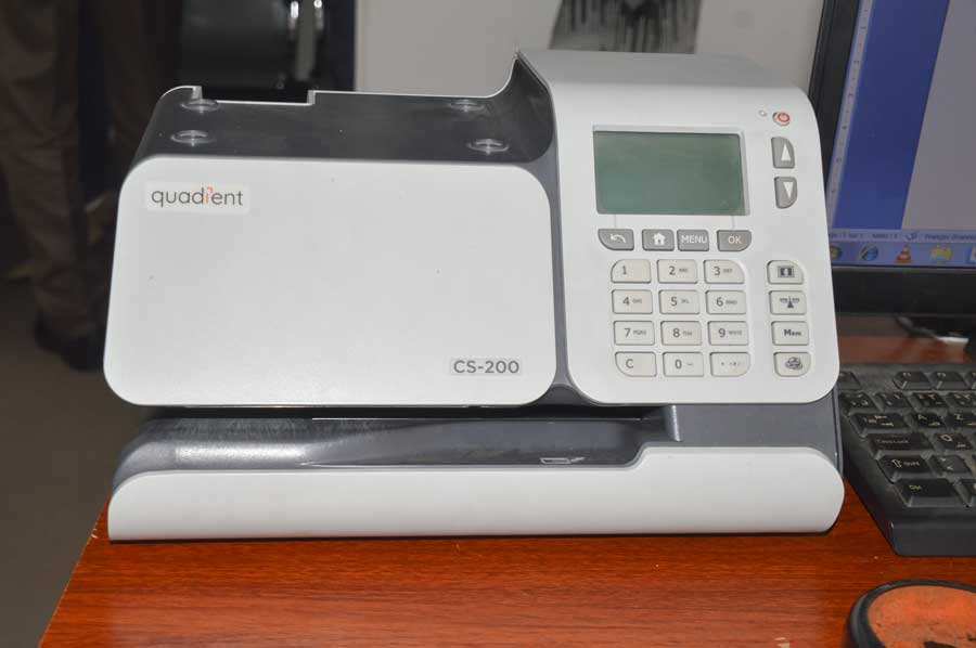 « Les machines à timbrer sont biens fonctionnelles et tous les utilisateurs respectent les consignes du Ministre », a déclaré Madame Pierre-Edwige Céline Elodie Nguimbi Monguia