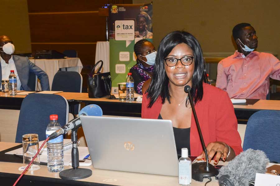 La présentation du Portail contribuable a été faite par les deux chefs du projet E-TAX : Lambert Ifoko (Chef de projet utilisateurs-métiers) et Jodicia Moukouyou (Cheffe de projet informatique). « Le portail E-TAX permet aux agents des impôts de gérer tous les métier fiscaux et de s’informer sur les dossiers des contribuables sans se déplacer », a expliqué Lambert Ifoko. Ce dernier a saisi cette occasion pour informer les contribuable que la procédure de déclaration et de paiement des impôts au titre du mois d’octobre 2020 se fera dans l’application E-TAX (nouvelle) pour 16 types d’impôts et dans l’application SYSTAF (Système de traitement automatisé de la fiscalité-qui sera remplacé par E-TAX) pour les reste des impôts.