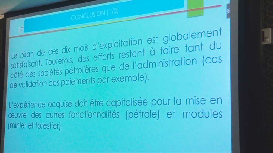 Dans l’ensemble, les acteurs du secteur pétrolier ont adhéré totalement au SYSPACE qu’ils considèrent comme « un bien commun », entre l’Etat et ses partenaires. « Nous nous réjouissons de la mise en œuvre d’un tel système qui permet de fiabiliser les outils de nos déclarations. Cependant, nous relevons quelques faiblesses, puisque l’œuvre humaine n’est jamais parfaite », selon Dior Linvani, cadre en charge de la Fiscalité pétrolière à la société Total E&P-Congo.