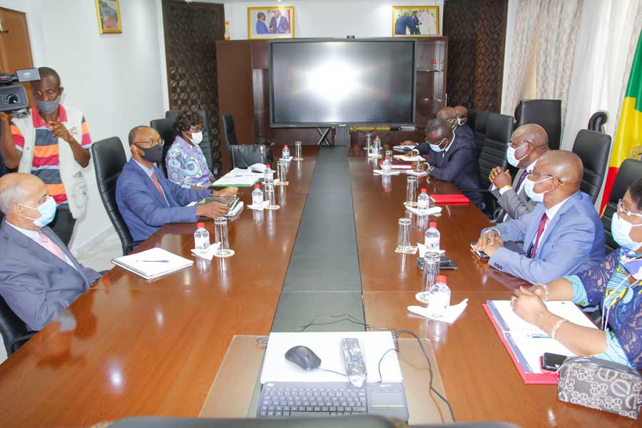 Le Ministre des Finances et du Budget, Calixte Nganongo, et son collègue en charge du Budget, Ludovic Ngatsé, se sont entretenus, jeudi 3 décembre 2020 à Brazzaville, avec une délégation de la banque mondiale conduite par Abdoulaye Seck, Directeur des Opérations de cette institution financière au Congo, au Cameroun, en République centrafricaine, au Gabon et en Guinée Equatoriale.