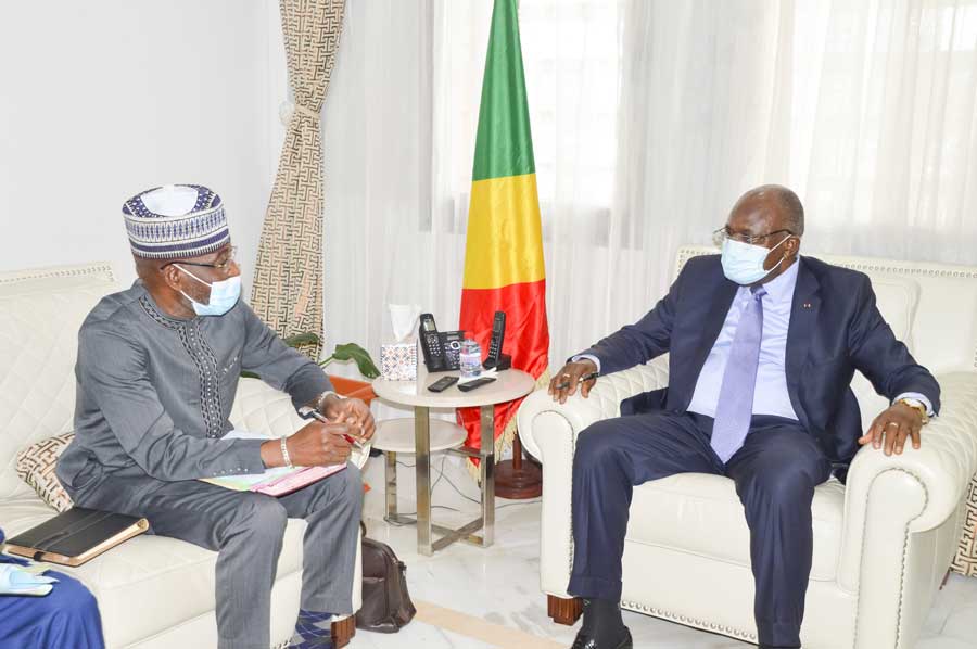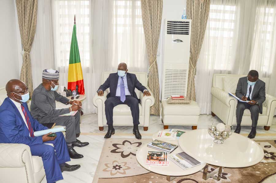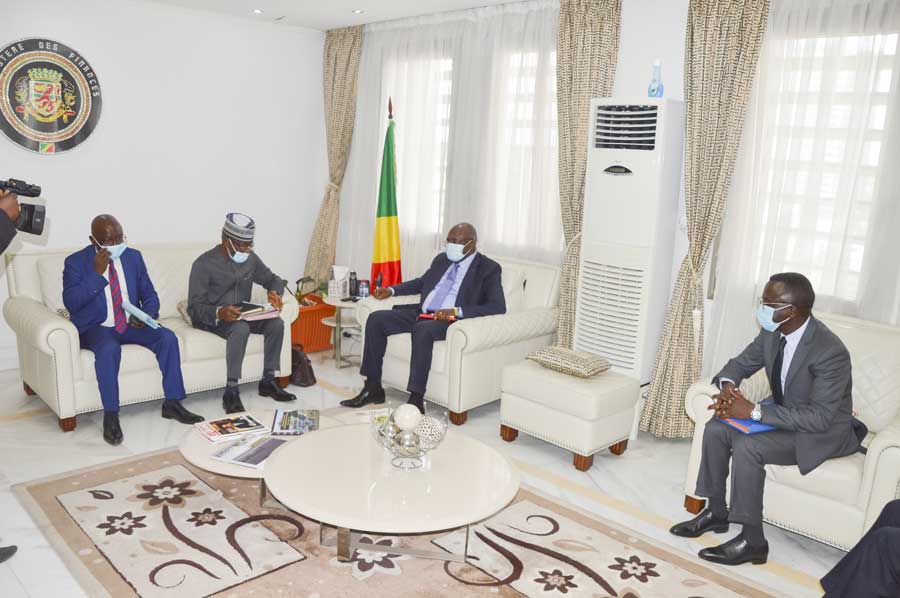 Calixte Nganongo, Ministre congolais des Finances et du Budget, nouveau président du Conseil des Ministres des Finances de la CIMA, a reçu en audience, lundi 15 février 2021 à Brazzaville, le Camerounais Ncharé Issofa, Secrétaire général de cette institution.