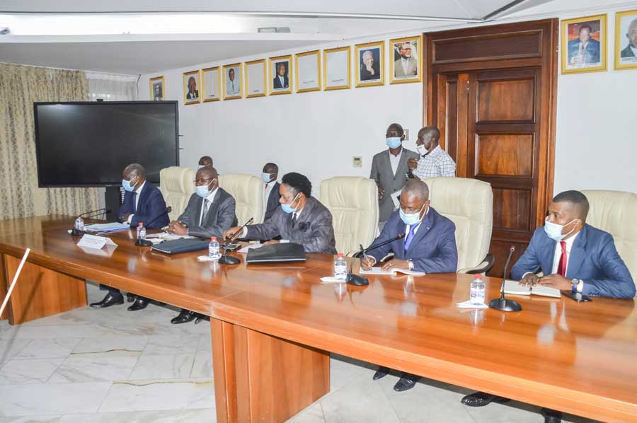 Le Ministre des Finances et du Budget, Calixte Nganongo, et son collègue Délégué au Budget, Ludovic Ngatsé, ont reçu en audience, lundi 9 novembre 2020 à Brazzaville, une délégation de la Commission nationale de transparence et de responsabilité dans la gestion des finances publiques (CNTR), conduite par son président, Joseph Mana Fouafoua.