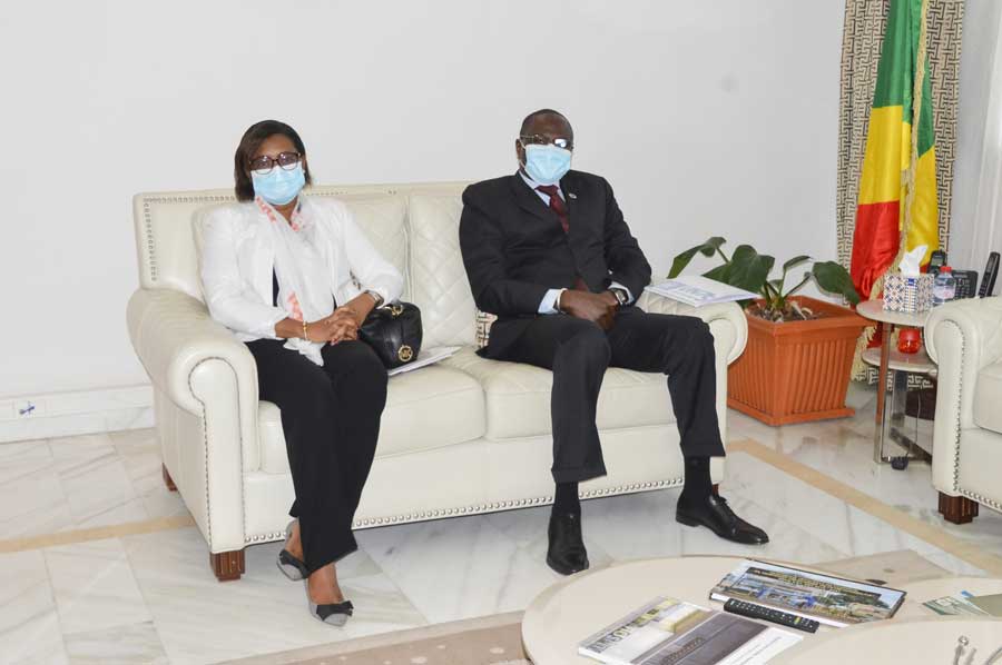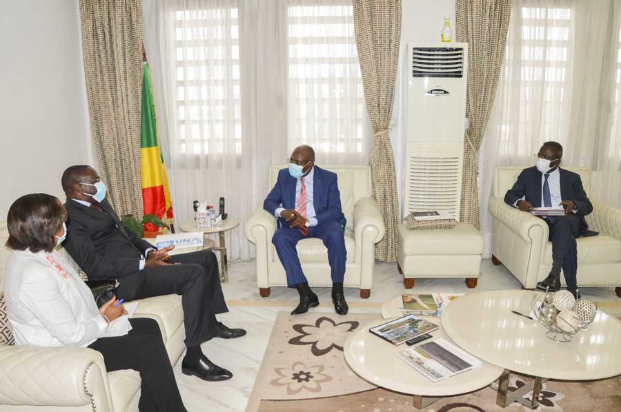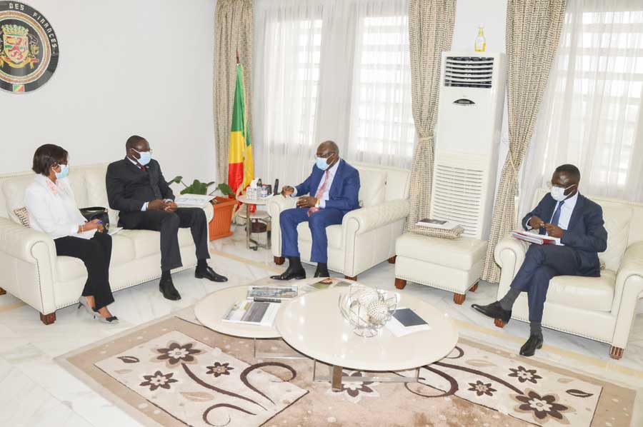 Le Ministre congolais des Finances et du Budget, Calixte Nganongo, assisté de son collègue Délégué au Budget, Ludovic Ngatsé, a accordé, jeudi 8 octobre 2020 à Brazzaville, une audience au Représentant-Résident du Programme des Nations unies pour le développement (PNUD) au Congo, Maleye Diop. Ils ont échangé, entre autres sujets, sur le retour de la République du Congo à l’Initiative internationale pour la transparence de l’aide (IITA), pour laquelle le PNUD assure le Secrétariat technique.
