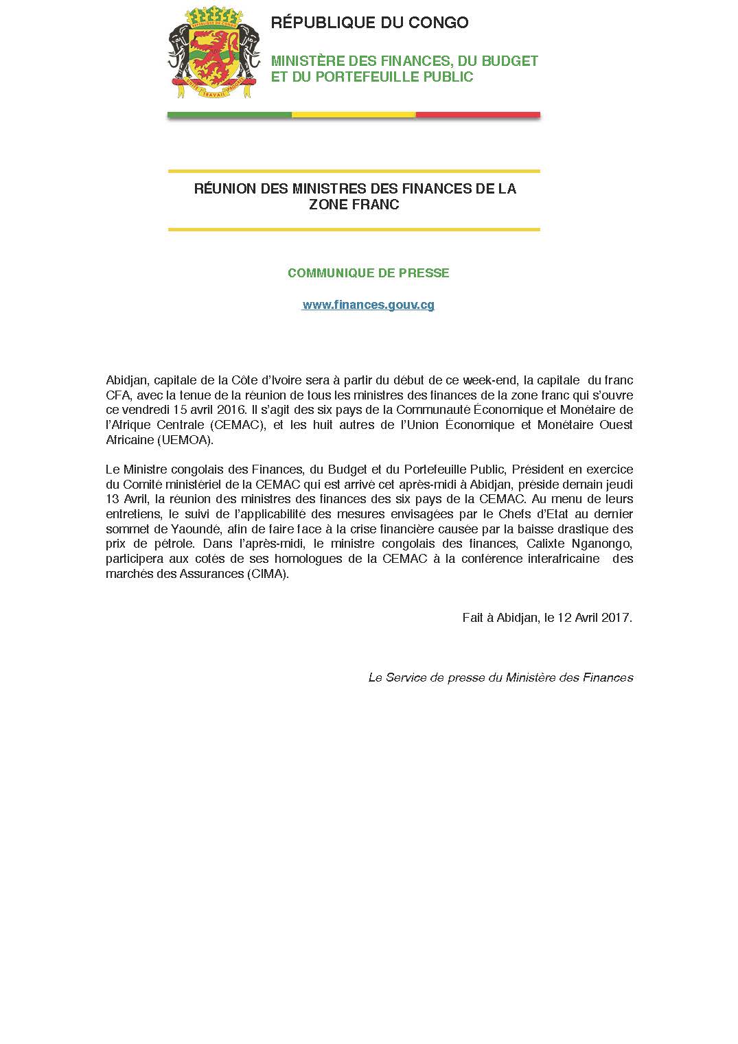 > Communiqué de presse réunion des ministres de finances de la zone franc