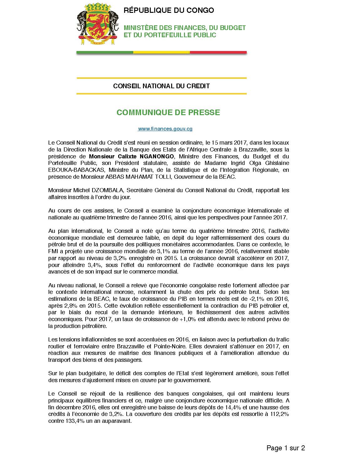 > Communiqué de presse réunion du Conseil National du Crédit