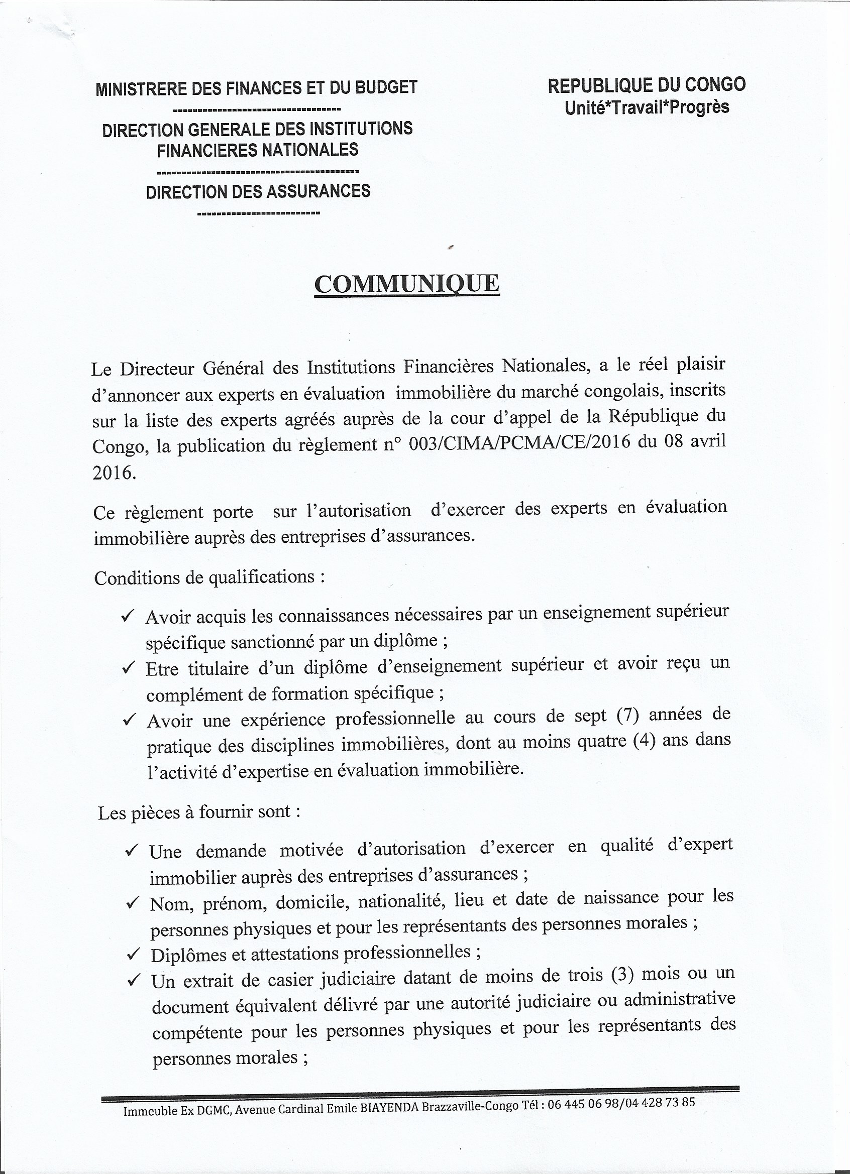 Communiqué de presse sur l'autorisation d'exercer des experts en évaluation immobilière auprès des entreprises d'assurances