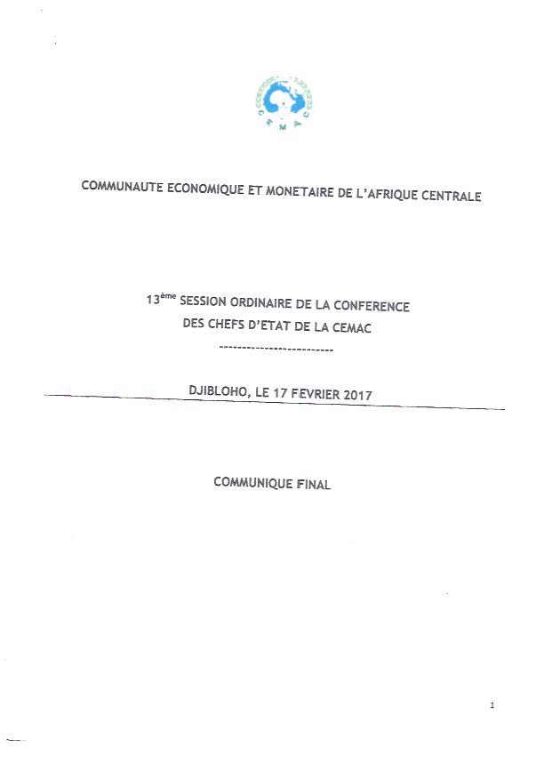 > Communiqué Final de la 13ème Session Ordinaire de la Conference des Chefs d'Etat de la CEMAC