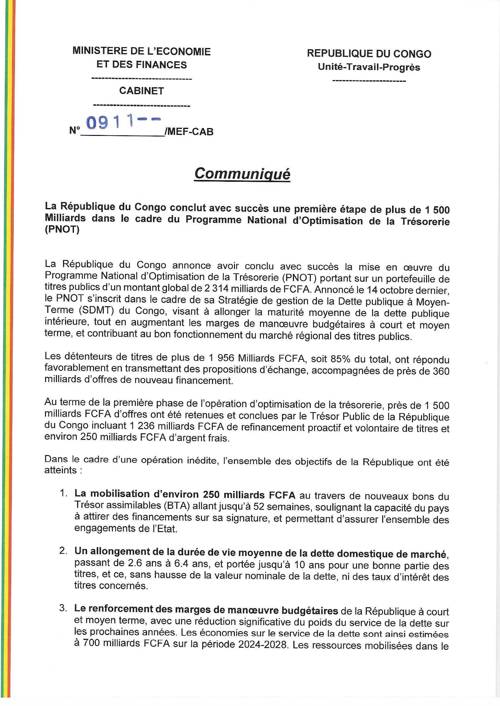 Communiqué de presse - réussite de la 1ère étape du PNOT
