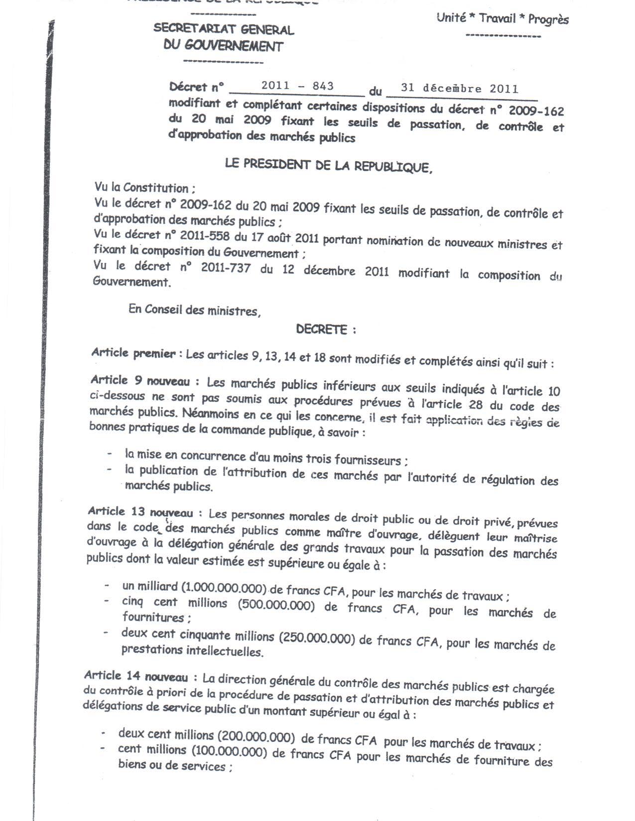 Décret N°2011-843 fixant les seuils de passation des marchés publics.pdf
