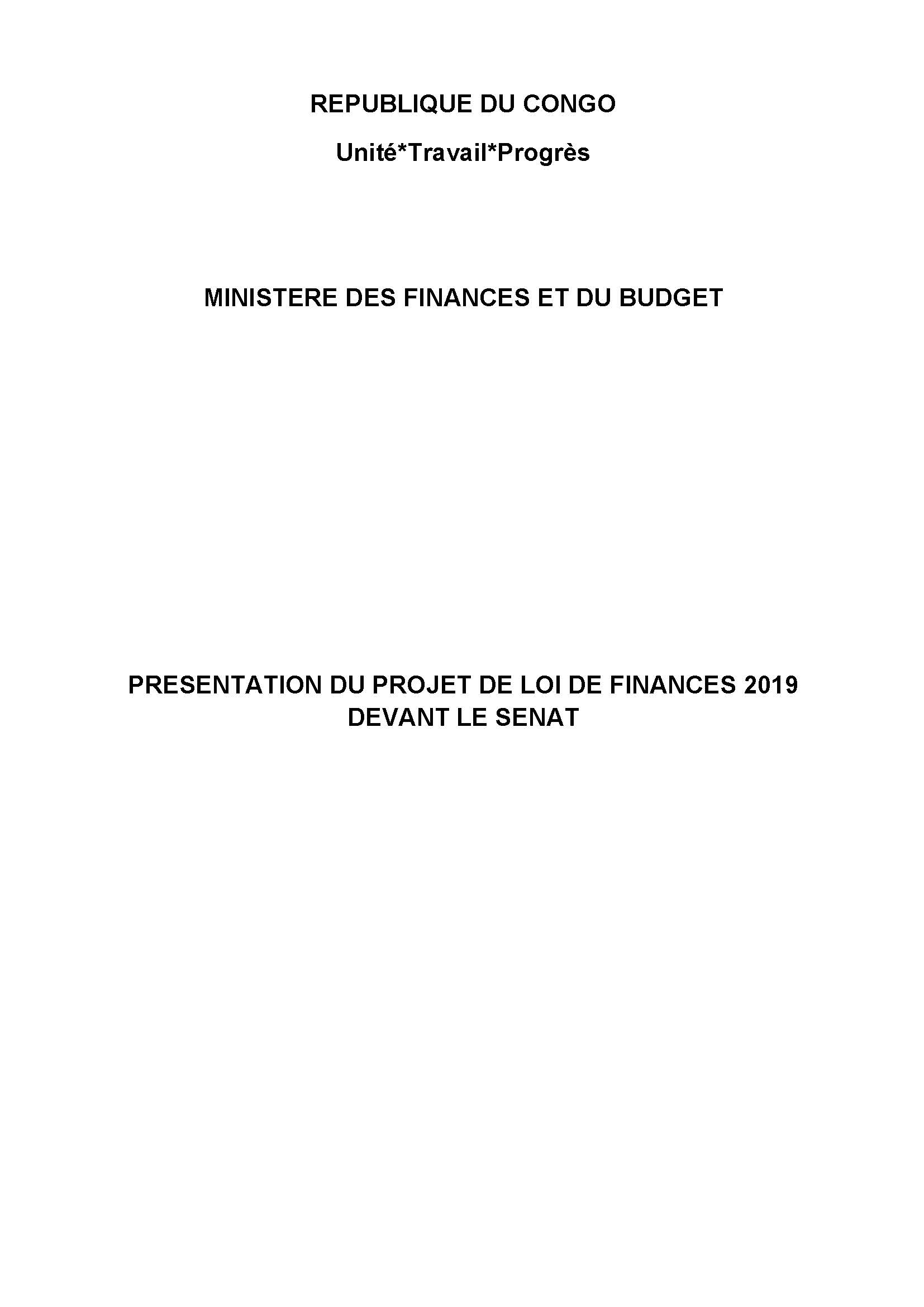 > Discours du Ministre Calixte NGANONGO à l'occasion de la présentation de la Loi de finances 2019 au Sénat