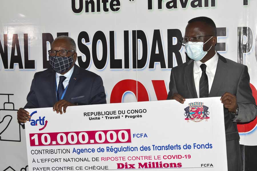 Elles étaient porteuses de deux chèques, respectivement de 10 millions de F CFA pour l’ARTF et 2 millions de F CFA pour l’Eglise néo-apostolique, dans le cadre de la contribution au Fonds COVID-19 et au Fonds national de solidarité, institués par le Chef de l’Etat, Denis Sassou-N’Guesso et son gouvernement.