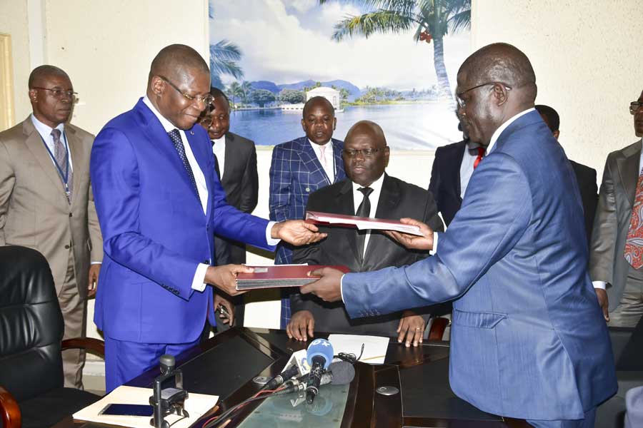 Les nouveaux directeurs généraux des Douanes et des droits indirects (DGDDI), Guénolé Mbongo Koumou, et des Impôts et des domaines, Ludovic Itoua, ont été installés dans leurs fonctions, vendredi 4 janvier 2019, par Henri Loundou, Directeur de cabinet, représentant Calixte Nganongo, Ministre des Finances et du Budget.