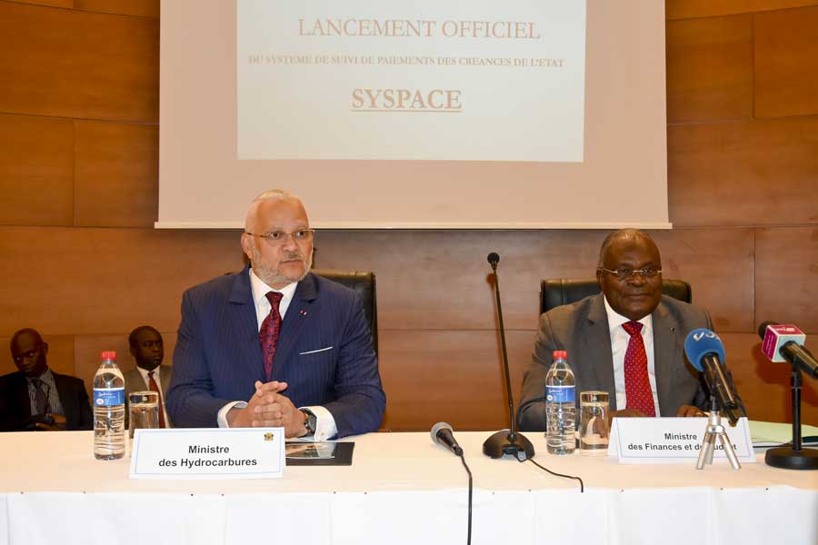 Le Ministre des Finances et du Budget, Calixte Nganongo, a procédé, lundi 4 février 2019 à Brazzaville, au lancement de la mise en production de la plateforme dénommée Système de suivi des paiements des créances de l’Etat (SYSPACE), dans son volet pétrolier, en présence de son collègue des Hydrocarbures, Jean Marc Thystère Tchicaya.