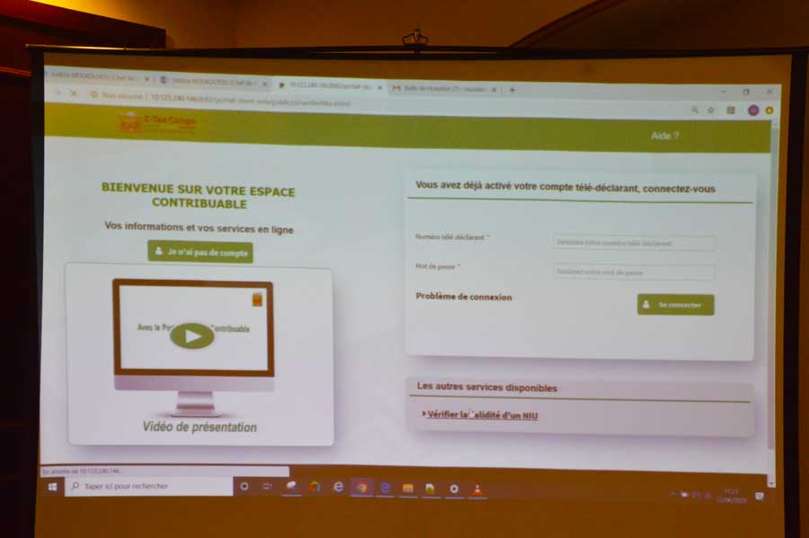 « Le projet E-TAX comporte deux volets à savoir : le volet gestion interne de l’administration fiscale, et le volet gestion des contribuables. L’application E-TAX permettra au contribuable d’accéder en temps réel à son dossier fiscal détenu par l’administration, et pouvoir travailler chez lui, sans avoir besoin de se déplacer, grâce à sa portée de télé-service ou des télé-procédures. L’administration fiscale et le contribuable auront ainsi le même niveau de connaissance du dossier fiscal, ce qui représente un réel avantage pour le contribuable. Car les opérations, formalités administratives, ainsi que, le paiement des impôts et autres taxes se feront désormais en ligne », à souligné Lambert Ifoko.