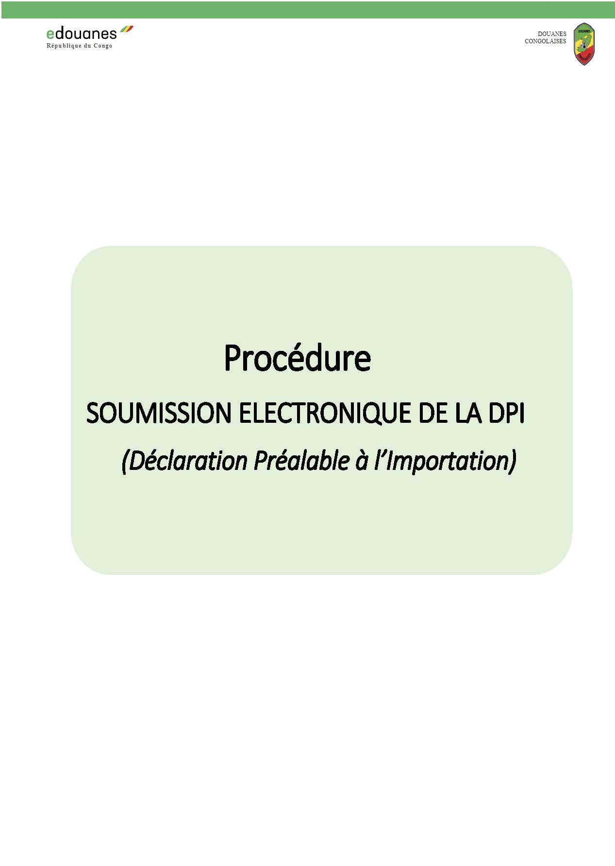 Procédure de soumission électronique de la DPI (Déclaration Préalable à l'Importation)