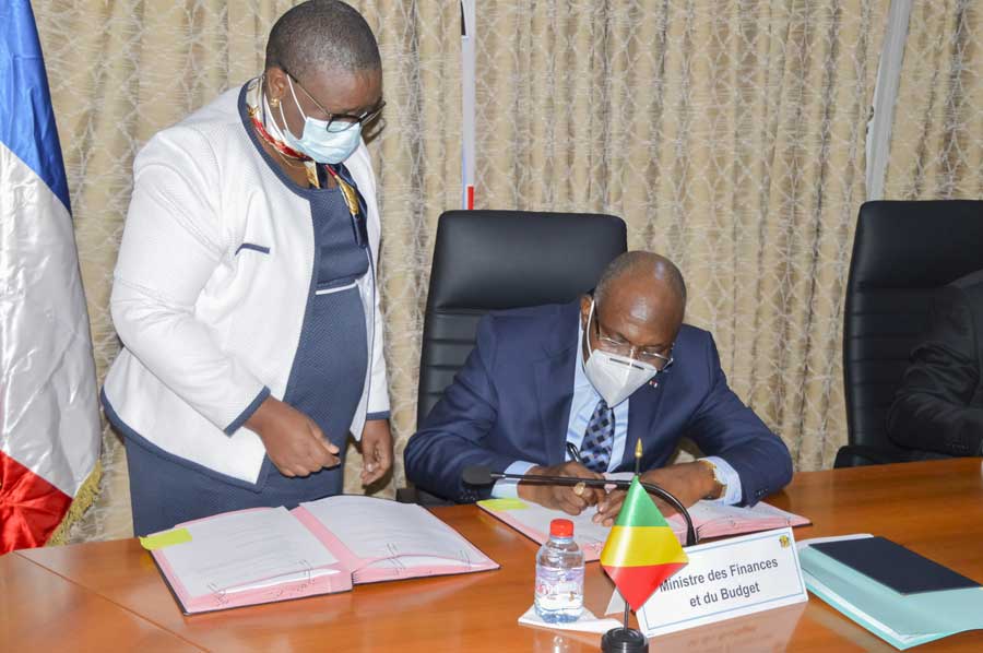 Mercredi 8 juillet 2020, dans la salle de conférence du Ministère des Finances et du Budget à Brazzaville, l’Ambassadeur de France au Congo, François Barateau ; le Directeur de l’Agence française de développement (AFD), Lionel Cafferini, et le Gouvernement congolais représenté par le Ministre des Finances et du Budget, Calixte Nganongo, ont signé deux conventions de subvention, d’un montant total de 7,35 millions d’euros (soit 4,8 milliards de F CFA).