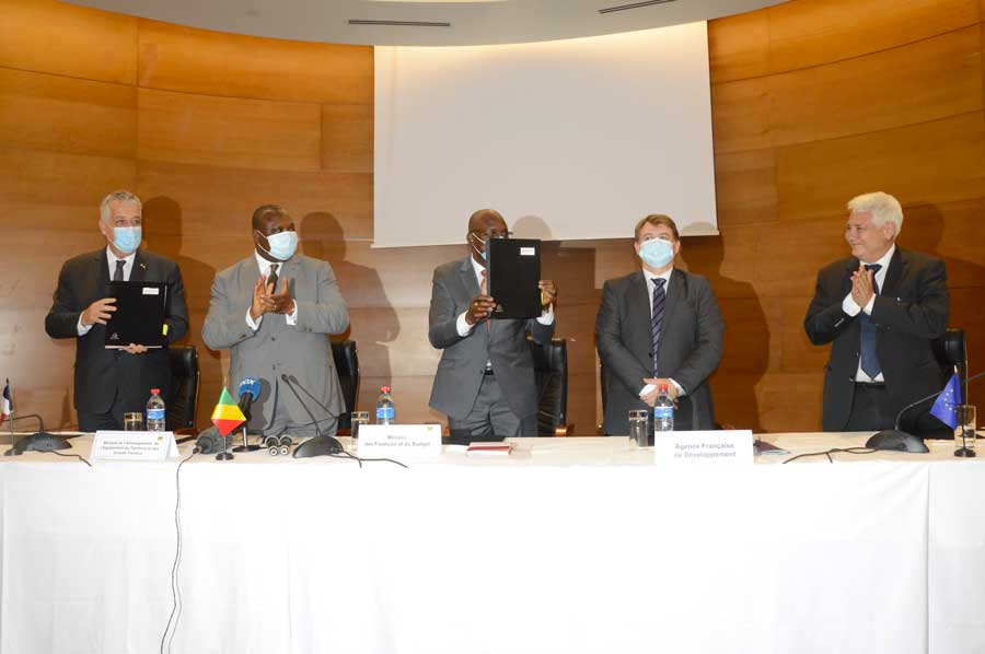 Le Ministre des Finances et du Budget, Calixte Nganongo, l’Ambassadeur de France au Congo, François Barateau et le Directeur de l’Agence française de développement, Lionel Caffferini ont procédé, mercredi 2 décembre 2020 à Brazzaville, à la signature d’une convention de subvention d’un montant total de 21 milliards de F CFA pour les travaux de réhabilitation, d’extension des systèmes de collecte, de gestion des eaux pluviales, ainsi que la mise en place de dispositifs de lutte contre les érosions, dans les villes de Nkayi et d’Owando.